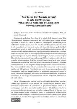 Vidmar, Luka. "Tine Germ: Smrt kraljuje povsod in bela Smrt triumfira: Valvasorjevo Prizorišče človeške smrti v evropskem kontekstu."