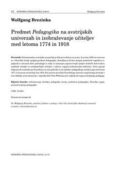 Predmet Pedagogika na avstrijskih univerzah in izobraževanje učiteljev med letoma 1774 in 1918