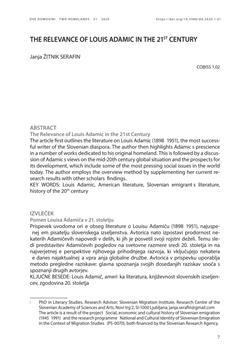 Žitnik Serafin, Janja. "The relevance of Louis Adamic in the 21st century."