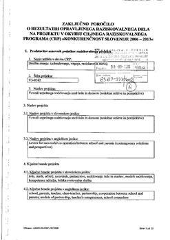 Kalin, Janica (09.2006/10.2008). Vzvodi uspešnega sodelovanja med šolo in domom (sodobne rešitve in perspektive).