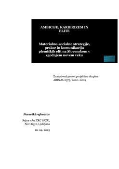 Ambicije, karierizem in elite : materialno-socialne strategije, prakse in komunikacija plemiških elit na Slovenskem v zgodnjem novem veku : znanstveni posvet projektne skupine (ARIS J6-2575, 2020–2024) : Ljubljana, Novi trg 2, Sejna soba ZRC SAZU, 10. april 2025 : povzetki referatov