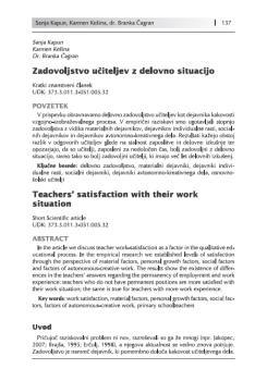 Kapun, Sanja, Kešina, Karmen, Čagran, Branka (2009). Zadovoljstvo učiteljev z delovno situacijo.