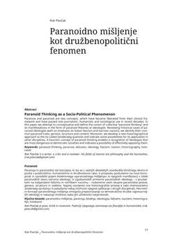 Plavčak, Rok. "Paranoidno mišljenje kot družbenopolitični fenomen."