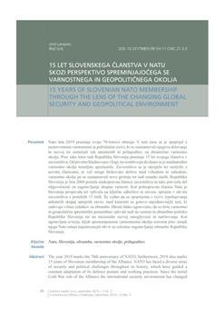 Lampret, Uroš, Grilj, Blaž (2019). 15 years of Slovenian NATO membership through the lens of the changing global security and geopolitical environment.