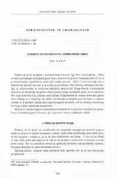 Gams, Ivan. "Termini za premikanje zemeljskih gmot."
