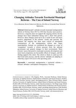 Higdem, Ulla, Hoyer, Hans Christian, Lesjo, Jon Helge, Monness, Erik. "Changing attitudes towards territorial municipal reforms."