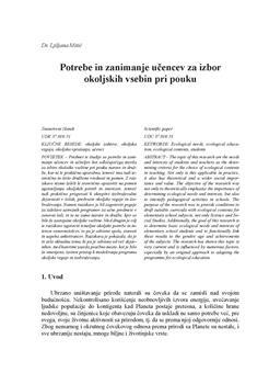 Mitić, Ljiljana. "Potrebe in zanimanje učencev za izbor okoljskih vsebin pri pouku."