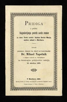 Napotnik, Mihael (1895). Pridiga o priliki blagoslovljenja peterih novih zvonov za novo farno cerkev blažene Device Marije, Matere milosti v Mariboru.