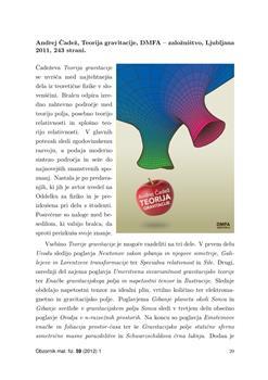 Kodre, Alojz, Strnad, Janez. "Andrej Čadež, Teorija Gravitacije, DMFA - založništvo, Ljubljana, 2011, 243 strani."