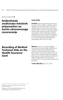Bolka, Anka. "Evidentiranje medicinsko-tehničnih pripomočkov na kartici zdravstvenega zavarovanja."