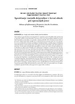 Jerin, Aleš, Osredkar, Joško, Požar-Lukanovič, Neva, Sojar, Valentin, Stanisavljević, Dragoje, Paver-Eržen, Vesna. "Sproščanje vnetnih dejavnikov v krvni obtok pri operacijah jeter."
