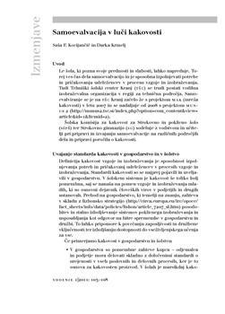 Kocijančič, Saša F., Krmelj, Darka. "Samoevalvacija v luči kakovosti."