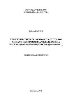 Hafner, Polona, Kadunc, Aleš, Levanič, Tom (2015). Vpliv klimatskih dejavnikov na izotopsko sestavo in zgradbo branik evropskega macesna (Larix decidua Mill.) in doba (Quecus robur L.). URN:NBN:SI:DOC-EV4QJFMS from http://www.dlib.si