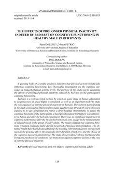 Dolenc, Petra, Petrič, Mojca (2013). The effects of prolonged physical inactivity induced by bed rest on cognitive functioning in healthy male participants.
