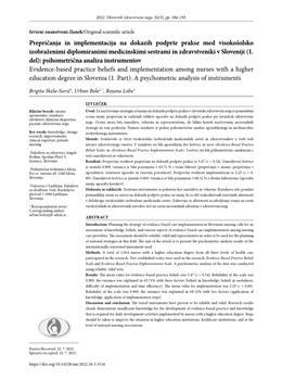 Skela-Savič, Brigita, Bole, Urban, Lobe, Bojana (2022). Prepričanja in implementacija na dokazih podprte prakse med visokošolsko izobraženimi diplomiranimi medicinskimi sestrami in zdravstveniki v Sloveniji (1. del).