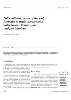 Folliculitis decalvans of the scalp : response to triple therapy with isotretinoin, clindamycin, and prednisolone