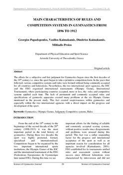Papadopoulos, Georgios, Kaimakamis, Vasilis, Kaimakamis, Dimitrios, Proios, Miltiadis (2014). Main characteristics of rules and competition systems in gymnastics from 1896 to 1912.