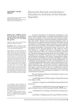 Hanus, Jozef, Péková, Monika. "Electronic records and archives."