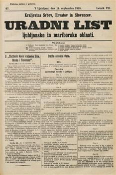 Uradni list Narodne vlade SHS v Ljubljani.
