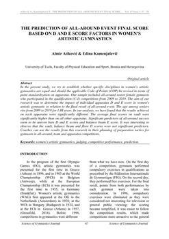 Atiković, Almir, Kamenjašević, Edina. "The prediction of all-around event final score based on d and e score factors in women's artistic gymnastics."