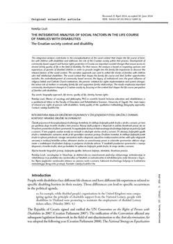 Lisak, Natalija (2014). The integrative analysis of social factors in the life course of families with disabilities.