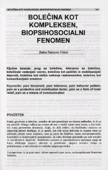 Rakovec-Felser, Zlatka. "Bolečina kot kompleksen, biopsihosocialni fenomen."