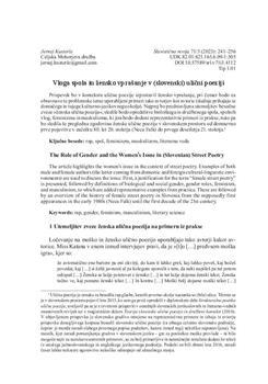 Kusterle, Jernej. "Vloga spola in žensko vprašanje v (slovenski) ulični poeziji."