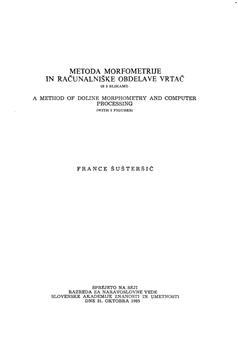 Šušteršič, France (1985). Metoda morfometrije in računalniške obdelave vrtač.