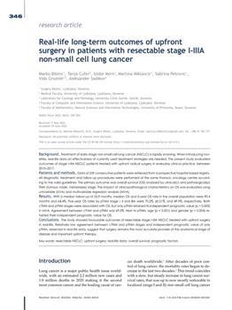 Bitenc, Marko, Čufer, Tanja, Kern, Izidor, Petrovic, Sabrina, Groznik, Vida, Sadikov, Aleksander. "Real-life long-term outcomes of upfront surgery in patients with resectable stage I-IIIA non-small cell lung cancer."