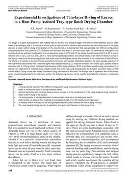 Babu, A. K., Kumaresan, G., Antony Aroul Raj, V., Velraj, R. (2020). Experimental investigations of thin-layer drying of leaves in a heat-pump assisted tray-type batch drying chamber.