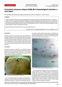 di Meo, Nicola, Pozzato, Gabriele, Leonardo, Eugenio, Trevisini, Sara, Trevisan, Giusto. "A transient cutaneous relapse of AML M1 in hematological remission."