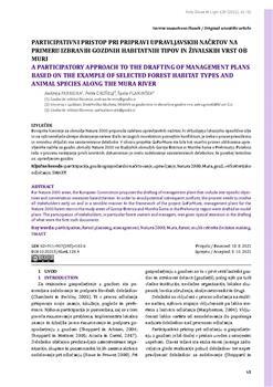 Ferreira, Andreja, Grošelj, Petra, Planinšek, Špela. "Participativni pristop pri pripravi upravljavskih načrtov na primeru izbranih gozdnih habitatnih tipov in živalskih vrst ob Muri."