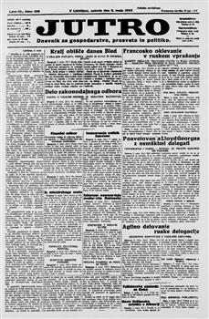 Jutro: dnevnik za gospodarstvo, prosveto in politiko (06.05.1922), letnik 3, številka 106. URN:NBN:SI:doc-14M4KSM3 from http://www.dlib.si