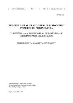 Parise, Mario, Valdes Suarez, Manuel (2005). The show cave at "Gran Caverna de Santo Tomás" (Pinar del Rio province, Cuba).