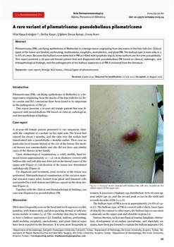 Kaya Erdogan, Hilal, Kaya, Zeliha, Derya Aytop, Çigdem, Acer, Ersoy. "A rare variant of pilomatricoma: pseudobullous pilomatricoma."