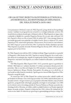 Iglič, Aleš (2006). Ob 130-letnici rojstva slovenskega etnologa, antropologa, zgodovinarja in diplomata dr. Nika Zupaniča (1876-1961).