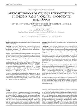 Mikek, Martin, Hussein, Mohsen. "Artroskopsko zdravljenje utesnitvenega sindroma rame v okviru enodnevne bolnišnice."