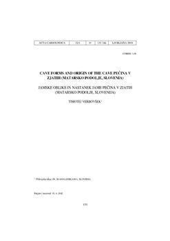 Verbovšek, Timotej. "Cave forms and origin of the cave Pečina v Zjatih (Matarsko podolje, Slovenia)."