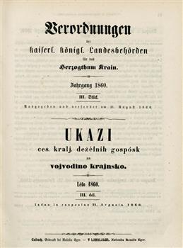 Deželni zakonik in vladni list za kranjsko kronovino (21.08.1860), letnik 12, številka 3. URN:NBN:SI:doc-5RC9EMXO from http://www.dlib.si