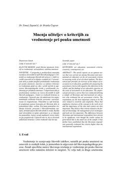 Zupančič, Tomaž, Čagran, Branka. "Mnenja učiteljev o kriterijih za vrednotenje pri pouku umetnosti."