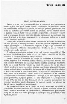Hartman, Bruno (1968). Prof. Janko Glazer.
