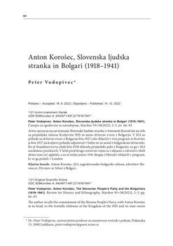 Vodopivec, Peter. "Anton Korošec, Slovenska ljudska stranka in Bolgari (1918–1941)."
