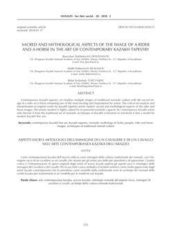 Doszhanov, Bauyrzhan Tattibekovich, Mukanov, Malik Floberovich, Turgynbay, Bolat Syrlashuly (2018). Sacred and mythological aspects of the image of a rider and a horse in the art of contemporary Kazakh tapestry.