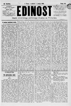 Edinost: glasilo slovenskega političnega društva tržaške okolice.