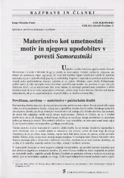 Mihurko Poniž, Katja. "Materinstvo kot umetnostni motiv in njegova upodobitev v povesti Samorastniki."