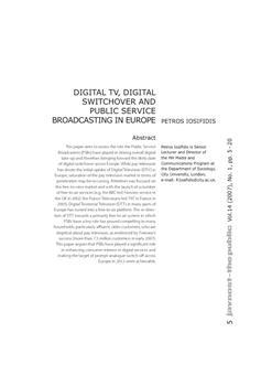 Iosifidis, Petros. "Digital TV, digital switchover and public service broadcasting in Europe."