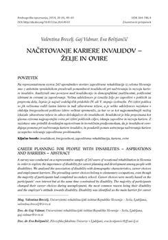 Brecelj, Valentina, Vidmar, Gaj, Boštjančič, Eva. "Načrtovanje kariere invalidov - želje in ovire."