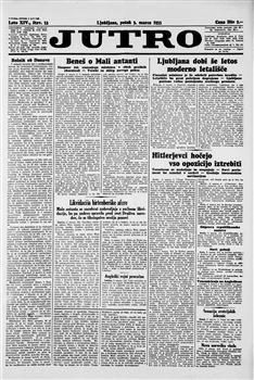 Jutro: dnevnik za gospodarstvo, prosveto in politiko (03.03.1933), letnik 14, številka 53. URN:NBN:SI:doc-F346W4BY from http://www.dlib.si