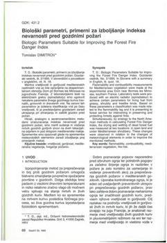 Dimitrov, Tomislav. "Biološki parametri, primerni za izboljšanje indeksa nevarnosti pred gozdnimi požari."