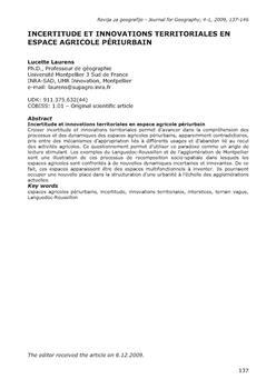 Laurens, Lucette (2009). Incertitude et innovations territoriales en espace agricole périurbain.